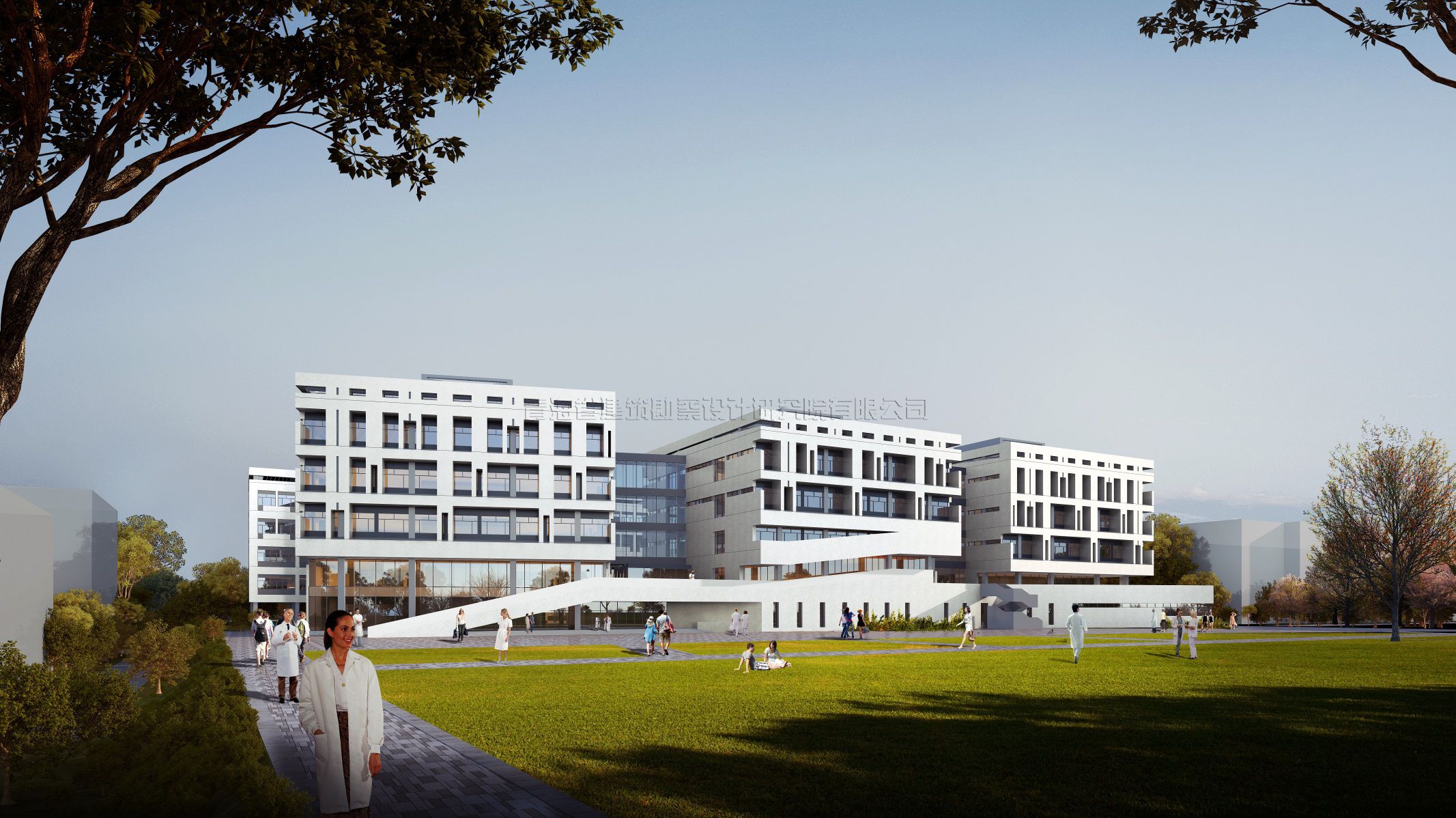 青海大學(xué)醫(yī)學(xué)院公共衛(wèi)生健康研究與臨床技能實訓(xùn)基地建設(shè)項目,地點位于西寧市城北區(qū)青海大學(xué)校園內(nèi)西南部。南向毗鄰城市干道泓學(xué)大街:總建筑面積29978.01平方米,其中地上29012.85平方米,地下965.16平方米。建筑物呈不規(guī)則狀,層數(shù)地上5層,地下1層;建筑高度23.95米,建筑首層為門廳、展廳、會議。公共活動空間、學(xué)術(shù)展廊、多媒體報告廳、多功能廳、中醫(yī)醫(yī)史館等公共交流空間;二層至五層分為兩大功能分區(qū),其中北樓為實驗室及其輔助支持空間,南樓為辦公室,教研室、實訓(xùn)室、智慧教室等辦公教學(xué)空間。